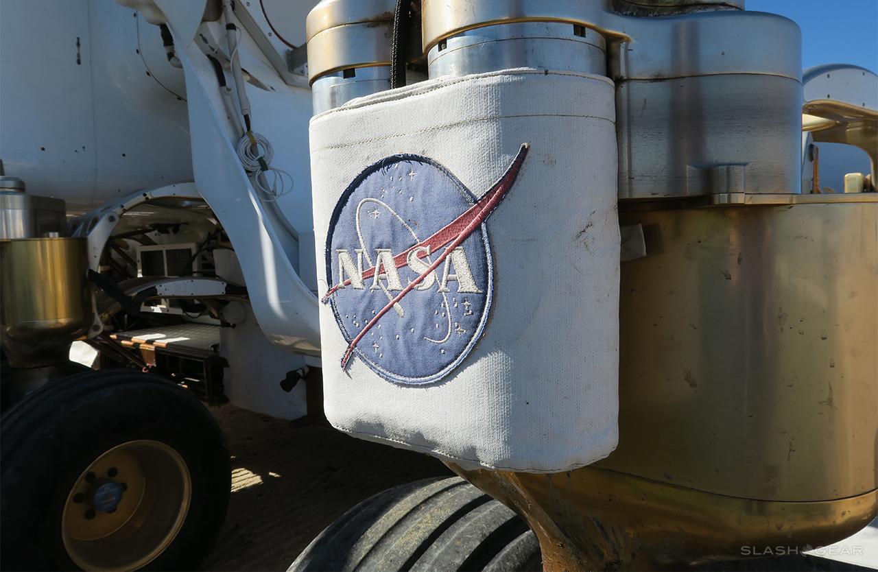 This camera sits in the center of the NASA logo and provides the driver with views he or she'd be otherwise unable to see from the driver's seat.