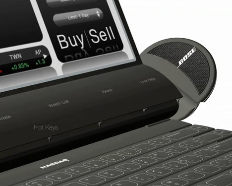 Now it's just a design exercise, so we should hold off on some of the more harsh critique perhaps, but I'm not entirely sure why a stock-market terminal requires a Blu-ray drive. Then again, it has Bose speakers too (and that media-friendly Firewire port) so perhaps Allen envisages us getting inevitably bored of trading and as such avoiding too much buyers-remorse by repurposing the NasdaqQ3 as a slick little home media device.