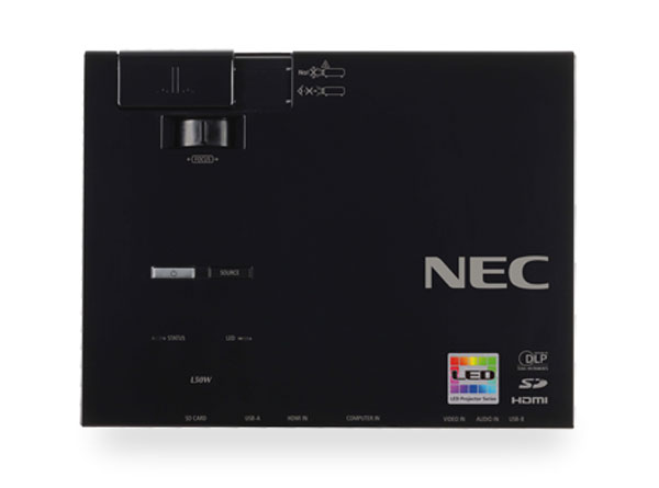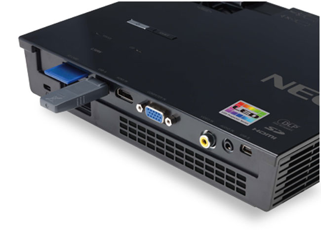 NEC has unveiled a new LED projector that is aimed at being as portable as possible for the mobile pros that need a projector on the go. The projector is called the NP-L50W and it is LED illuminated for a long life and cool operation. The projector boasts 500-lumens of brightness, which is much more brightness than smaller pico projectors can muster making the L50W one of the smallest fully functional projectors around.