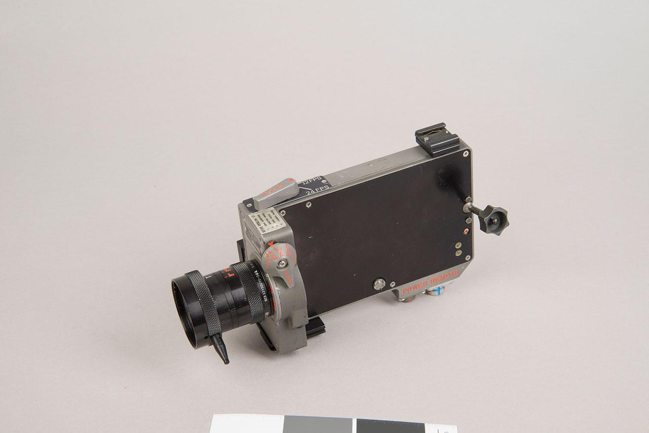Apollo 11 photo AS11-36-5389 shows the camera mounted to a crash bar aboard the craft.