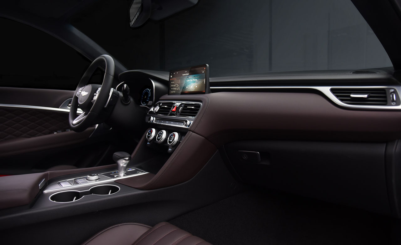 On the back of the car are Quad Lamp taillights inspired by the wings of the Genesis logo. The rear also has full-width G-Matrix mesh and body-colored diffusers surrounding the oval exhaust tips. The interior is meant to resemble a fighter jet cockpit and features the new 10.25-inch infotainment system mentioned before.