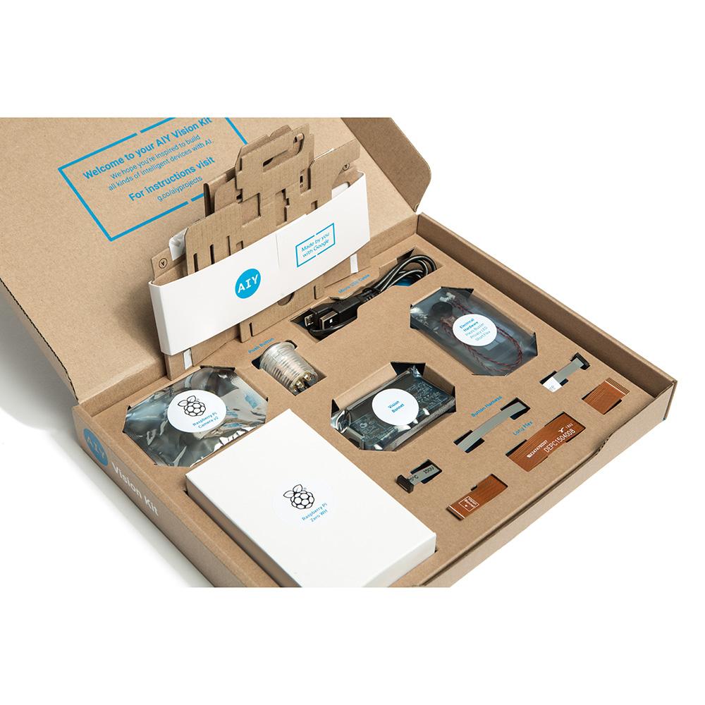 The kits come with the Raspberry Pi Zero WH, the variant of the smaller single-board computer (SBC) that comes with built-in Wi-Fi. Both also now come with an SD card with pre-installed software already so you won't have to download anything just to get started. The Vision Kit also comes with the necessary RPi Camera 2.