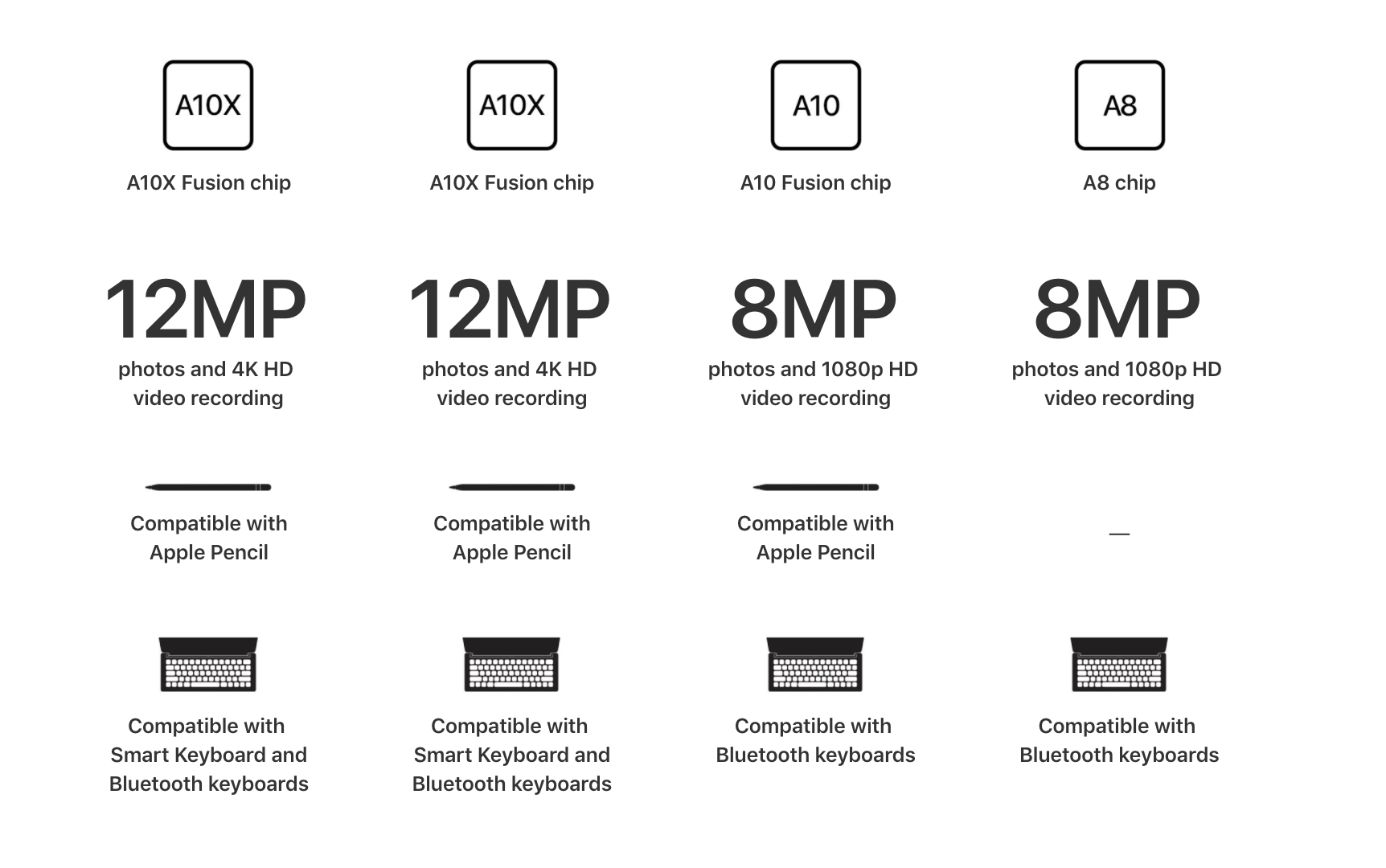 This new iPad has a 10-hour battery and an 8-megapixel camera on its back. The new iPad has an A10 Fusion chip, GPS, compass, and TouchID. There's also an HD FaceTime camera up front, and – of course – Apple Pencil support right out the box.