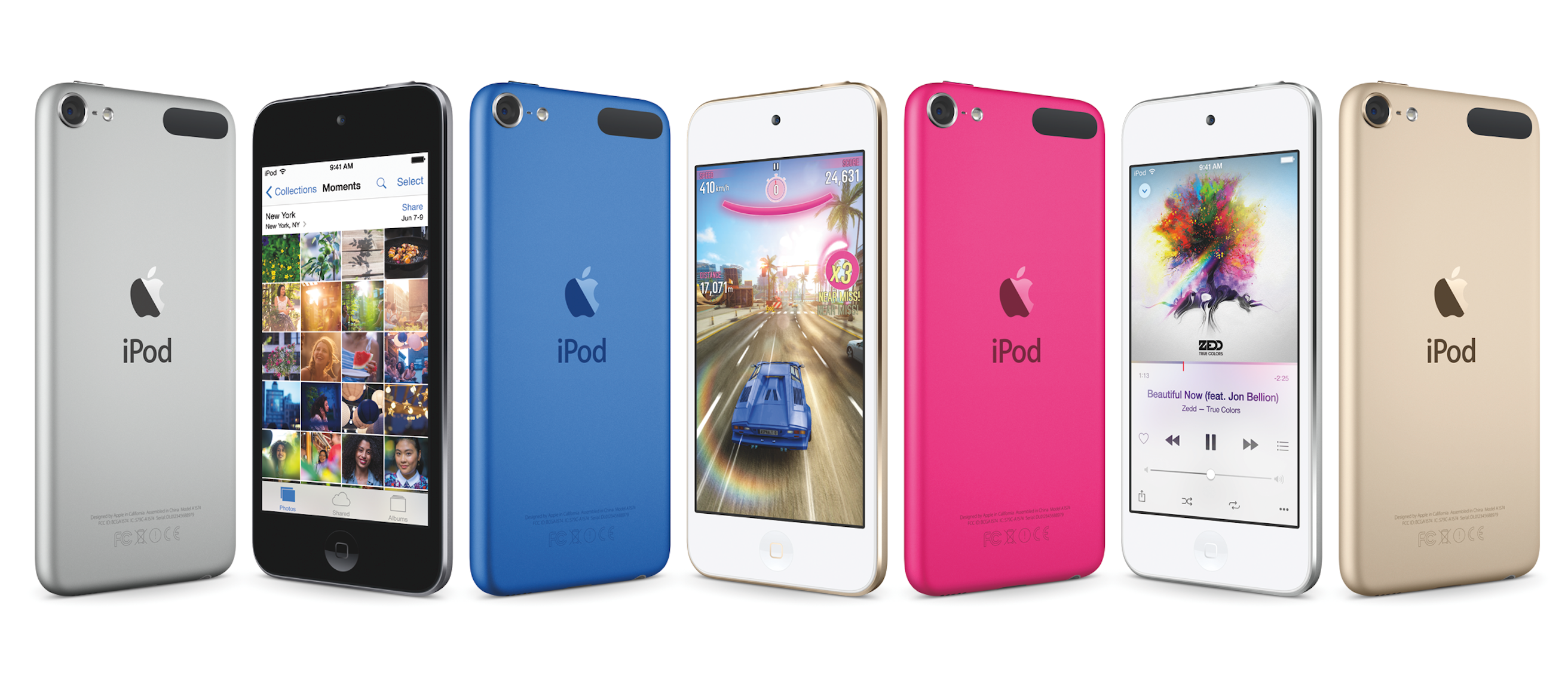 Color options will include five new finishes: space gray, silver, gold, pink, and blue, and in fact Apple will be rolling them out to the iPod nano and iPod shuffle, too. All of the new iPod touch 6th-gen models begin shipping today.