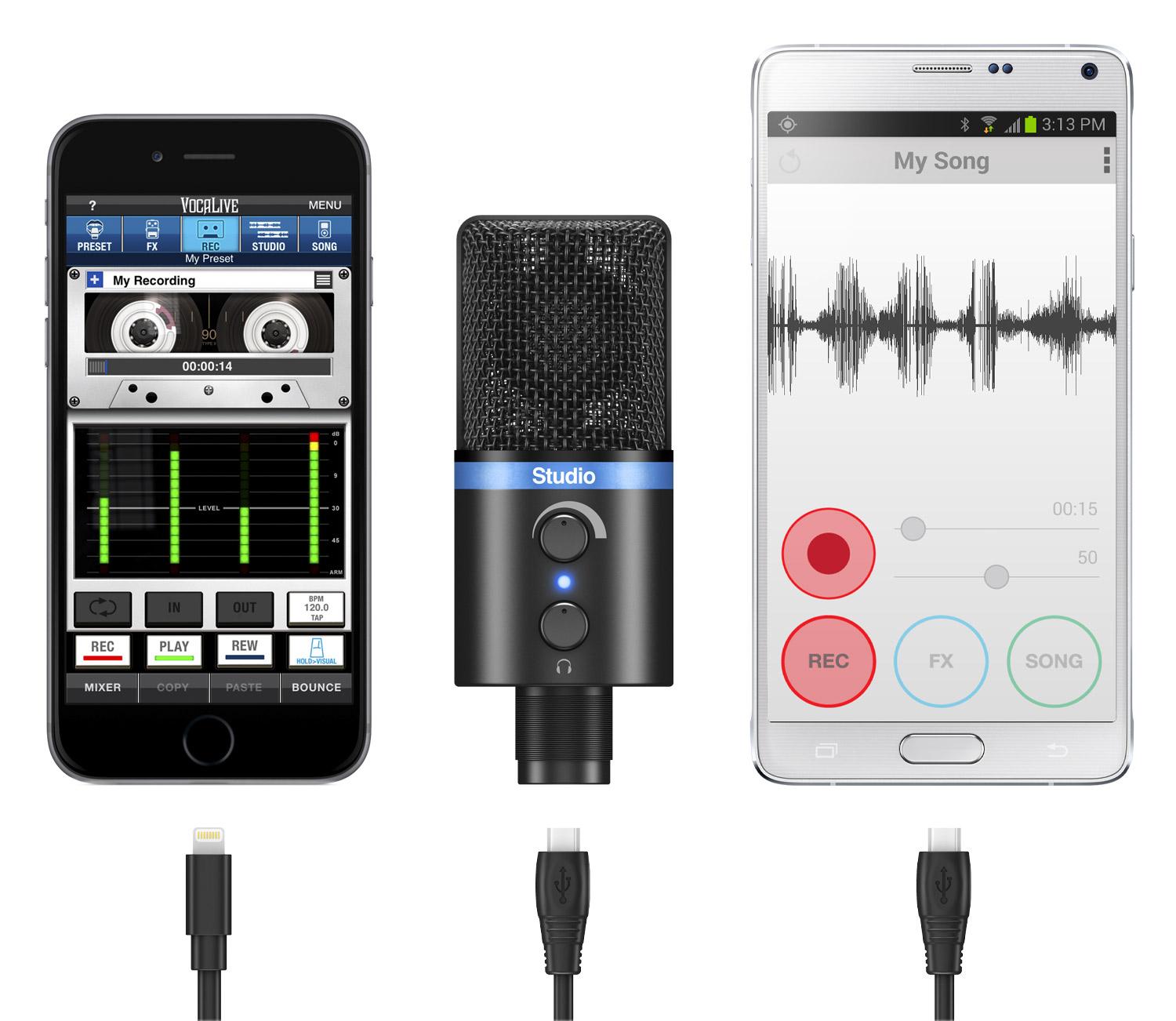 The iRig Mic Studio has a female micro USB port and a variety of connectors for a variety of devices, including Lightning for iOS devices, micro USB for Android, and USB for everything else. Of course, the mic really shines with IK Multimedia's suite of apps for recording, letting users fine tune, record multiple tracks, and even add effects to any recording. The mic has a headphone output for immediate feedback as well as a gain knob control and a multicolor LED indicator for quick access.