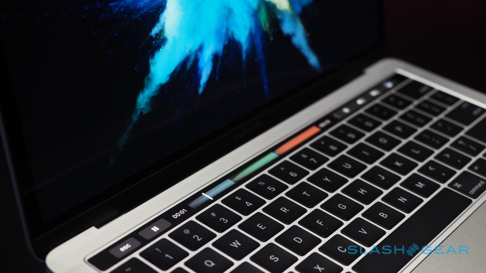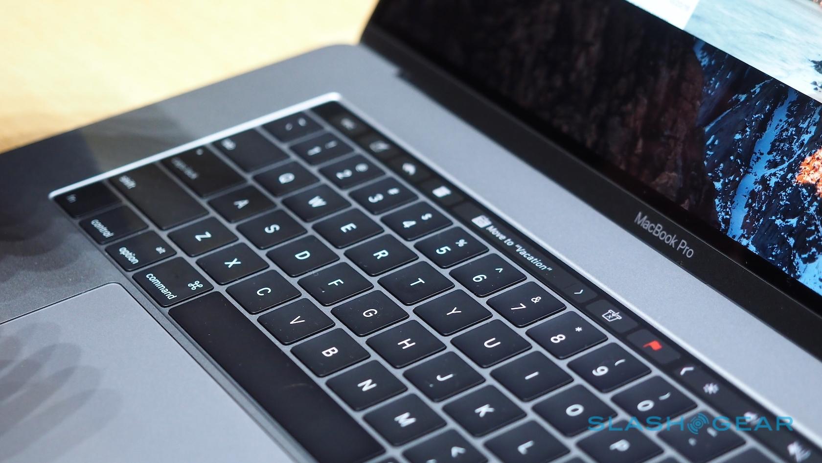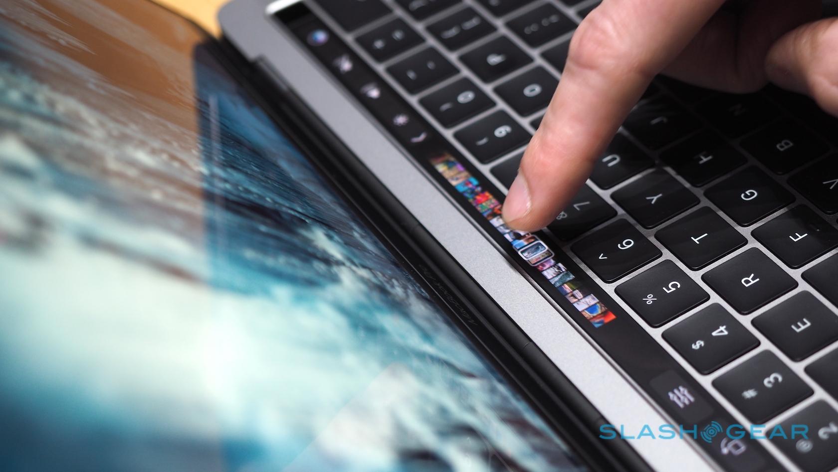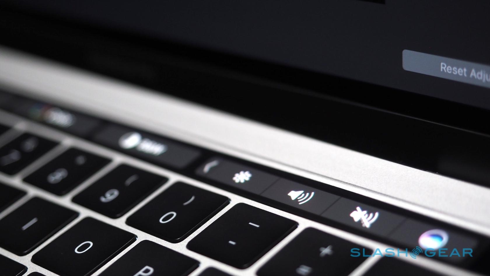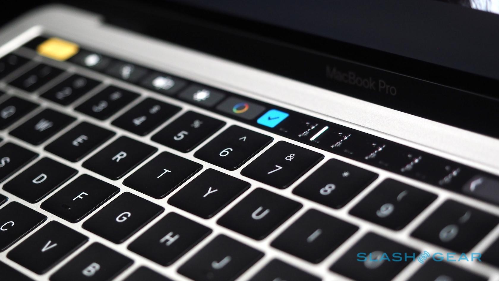 Most striking, of course, is the Touch Bar, a touch-sensitive strip that runs atop the keyboard and replaces the function key row. That shows contextually-relevant controls for each app and feature. At the end, there's a Touch ID button covered in sapphire glass.