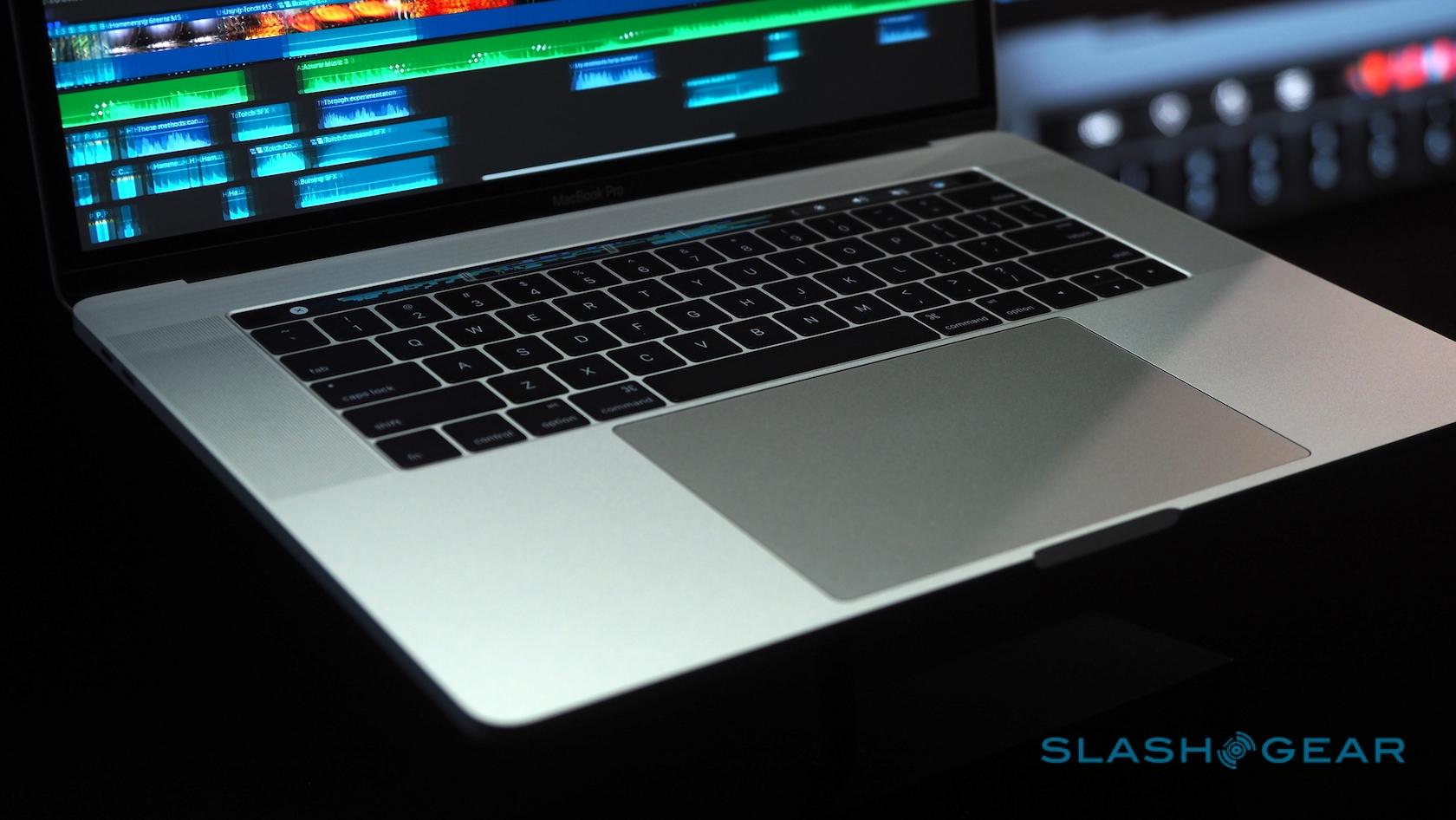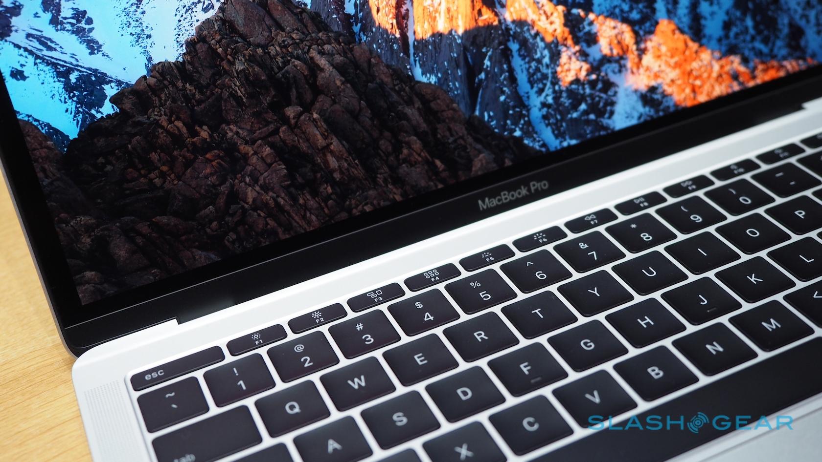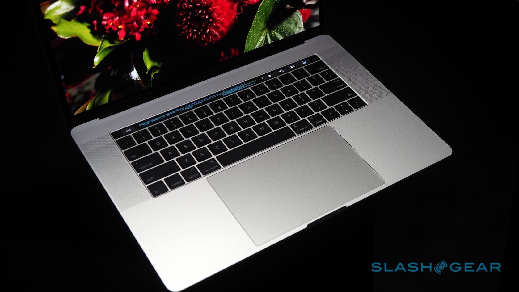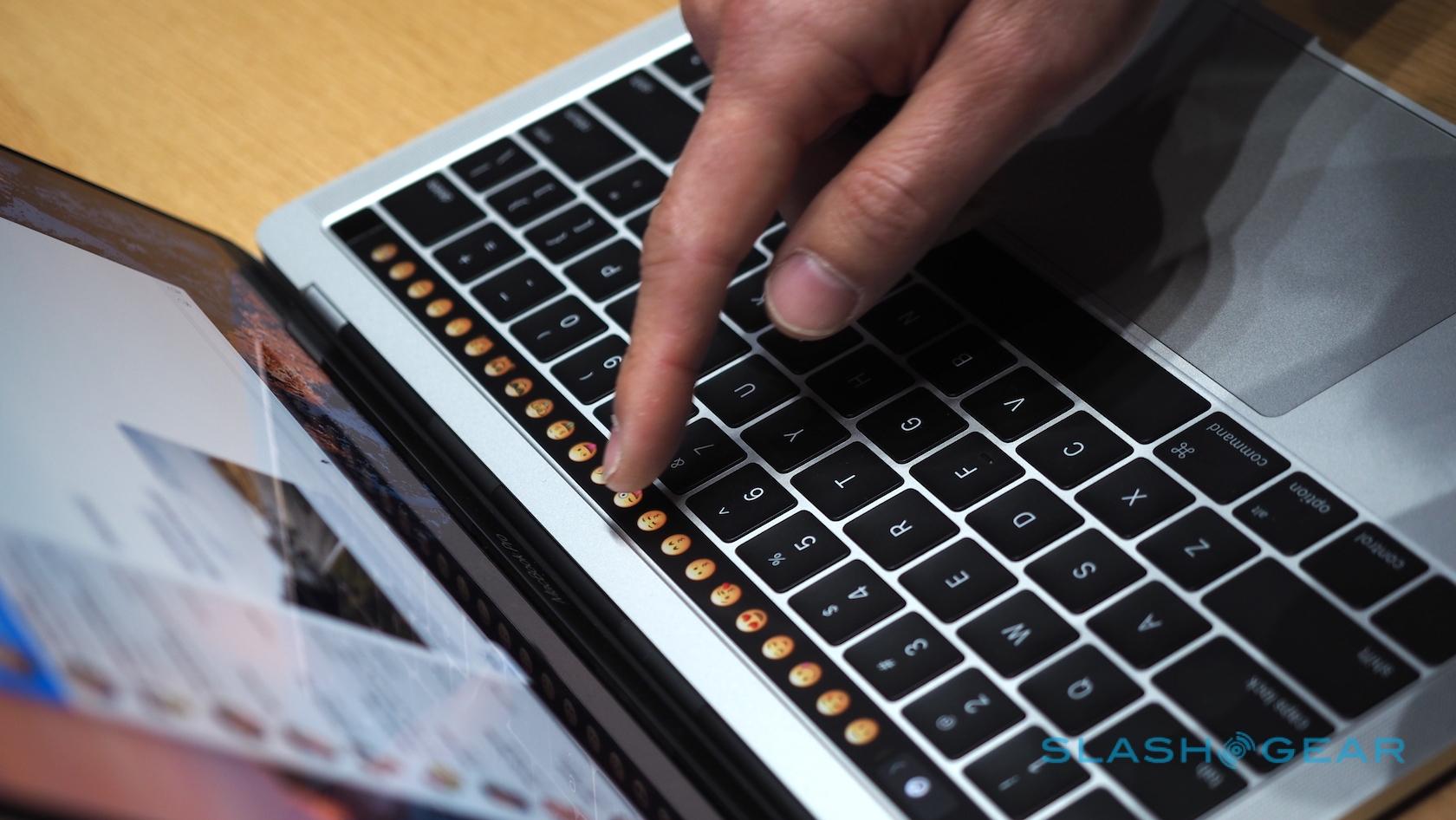 Most striking, of course, is the Touch Bar, a touch-sensitive strip that runs atop the keyboard and replaces the function key row. That shows contextually-relevant controls for each app and feature. At the end, there's a Touch ID button covered in sapphire glass.
