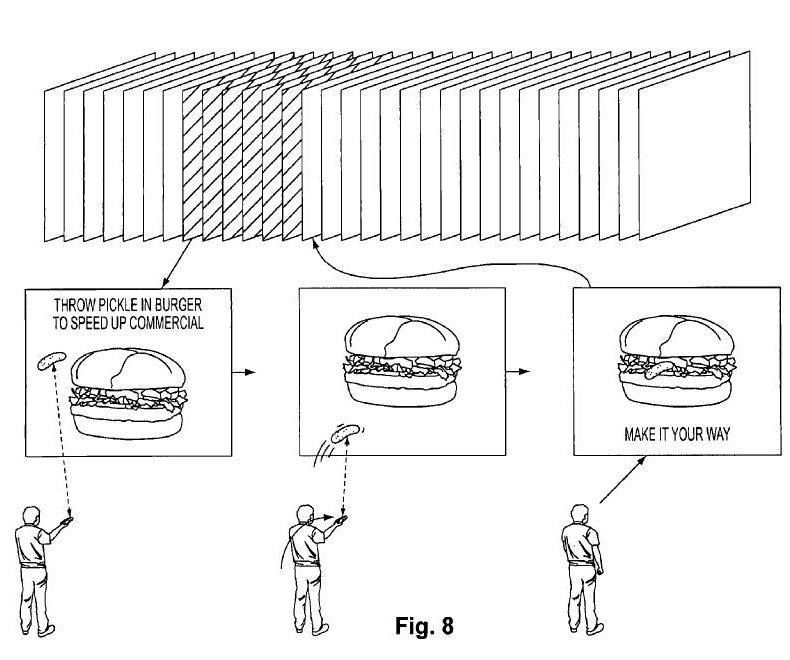 We can get behind the pizza idea, and we can get behind the gaming idea, but some of these examples walk that fine line between interesting and weird. This service presumably works with an Internet-connected TV or a TV that's connected to a console with Internet access. Obviously, if this ever comes to fruition, we can probably expect the finished product (or "idea" in this case) to differ quite a bit from the description in the patent, although you never know – it might not be long before we're shouting brand names at our televisions in order to get through commercials faster.