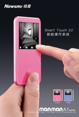 We also see what we guess is a 2-inch screen just above a heat sensitive strip which is located above the round button. The A1 also includes a RockChip RK2705 media chip, capable of playing multiple video files at high resolution along with multiple audio files. This device will be available by the end of January in bother pink and blue.