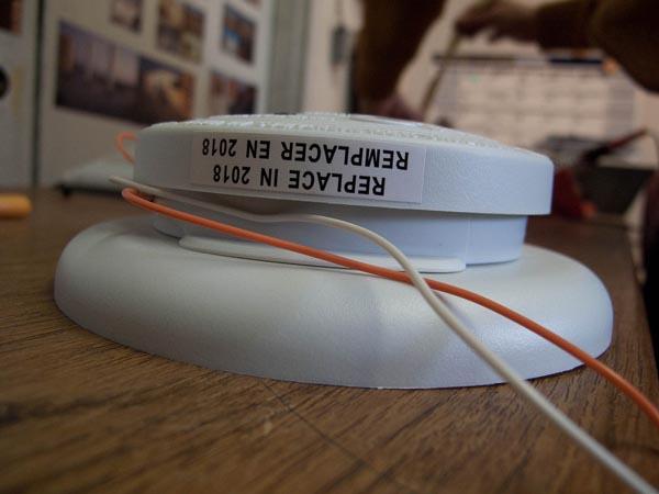 As with many other hacks we've seen recently, the NewsAlarm relies on an Arduino board for its primary link between the basic circuits of the smoke alarm and Jer's MacBook. A simple app monitors NewsWire according to preset keywords, and whenever the keywords – say, regarding Canadian Prime Minister Stephen Harper – start to flag up in more then 25-percent of the new stories the alarm is triggered.