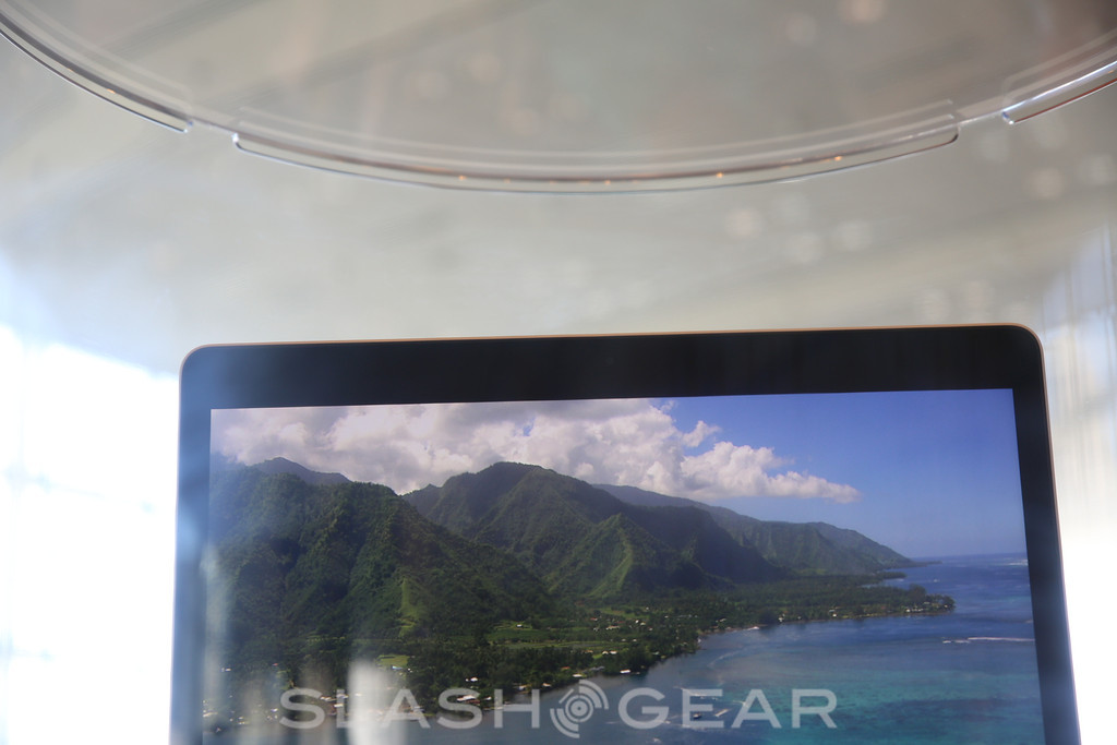 It's the display that's the real joy, of course. Through glass you're not getting the whole picture, but already it's clear that there's simply masses of extra detail on offer. Apple has already updated its key apps, but the true tipping point will be when – as with the Retina Display on the iPad and the iPhone before it – third-party developers and website managers bring their content up to scratch.