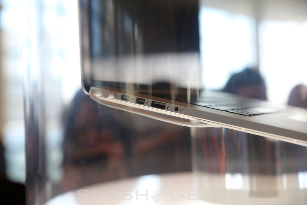The styling is unmistakably MacBook Pro – there's none of the taper of the MacBook Air, for instance – looking like the existing model (which will stay on sale, upgraded with Ivy Bridge processors) only condensed down. The ports have been usefully split between both sides – none of the struggles getting two fat USB sticks or modems to cohabit alongside each other.