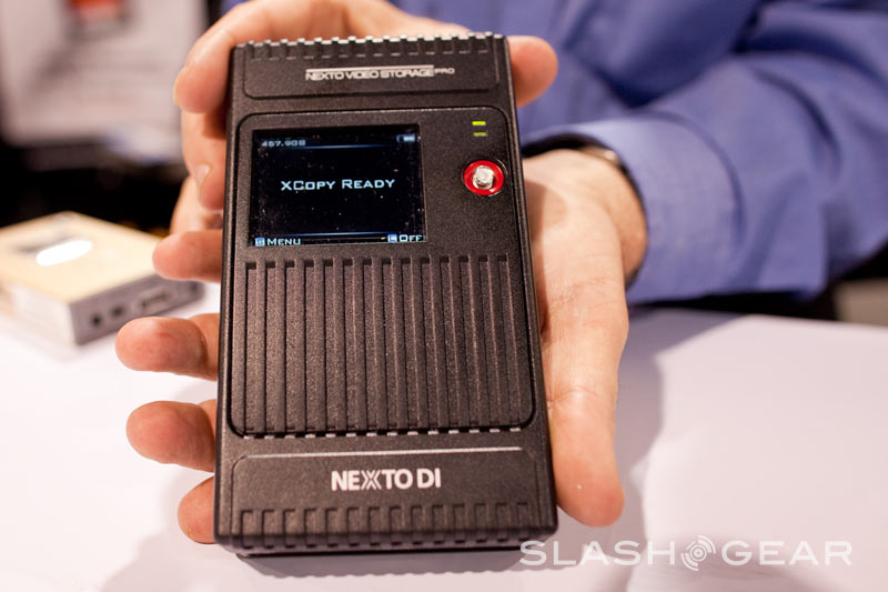 SlashGear swung by photography accessory experts NEXTO earlier today to see their latest portable storage device for DSLR pros. The NEXTO NVS2500 and NVS2700 both pack large internal storage – starting at 160GB and ramping up to 500GB; 2TB drives are theoretically supported – and have 2.7-inch LCD displays which not only show the progress of sucking RAW, JPEG and video footage from your camera memory cards, but can preview those photos and footage too.Video demos after the cut