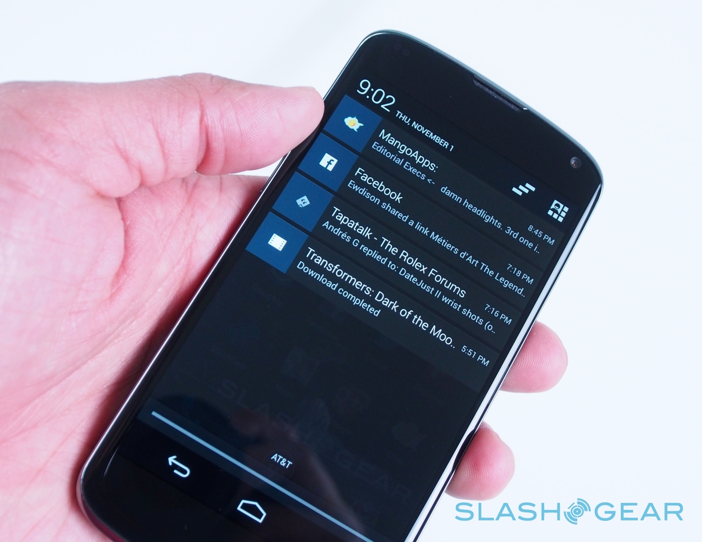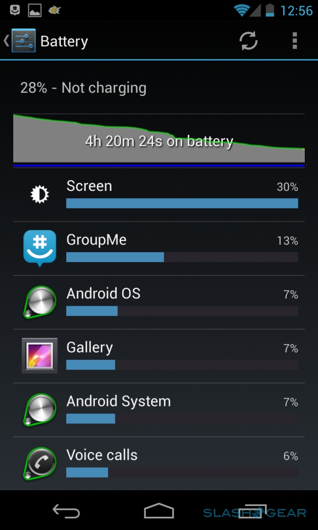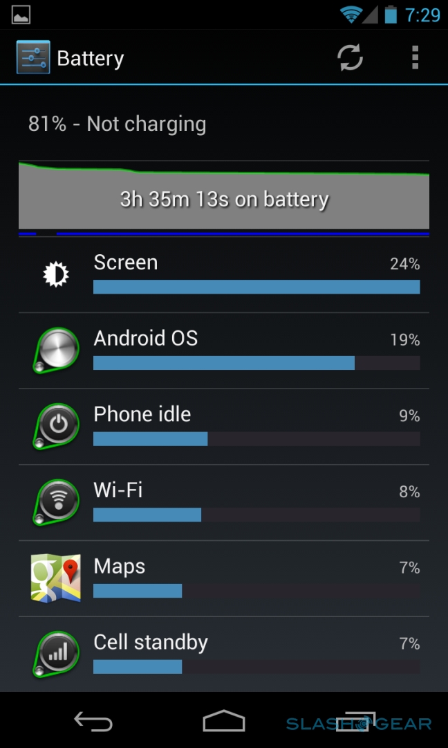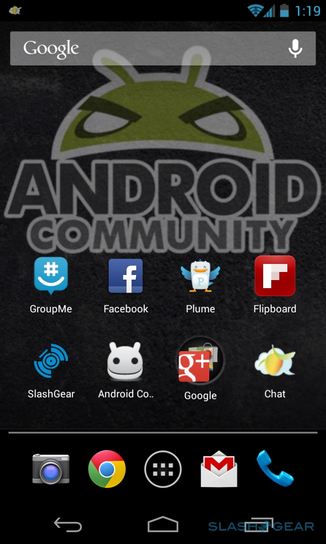 Google's new version of Android is a minor refresh, as the unchanged name suggests, but there are a few key improvements which the Nexus 4 (and the Nexus 10 tablet) debut. Ostensibly it looks the same as Jelly Bean as we've seen it before, with the most visible difference promising to be the new lock screen, which will show widgets for calendar, email, and other apps. Third-party developers will be able to add their own lock screen widgets to apps available from the Play marketplace. Unfortunately, the new lock screen tech wasn't ready in time for our review, and will go live when the final ROM hits the Nexus 4 in time for its November 13 release.