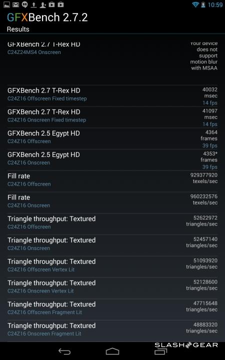 Raw numbers don't really explain the usability of the Nexus 7, however. It feels zippy and responsive, with apps loading quickly and multitasking avoiding the lag that can affect some lower-powered devices. One of the lingering complaints about the original Nexus 7 was that, over time, it would grow sluggish with continued use, something that was down to how Android handled cleaning its internal storage, but that's been addressed in Android 4.3 which should mean the new Nexus 7 stays perky even as you throw new apps at it.