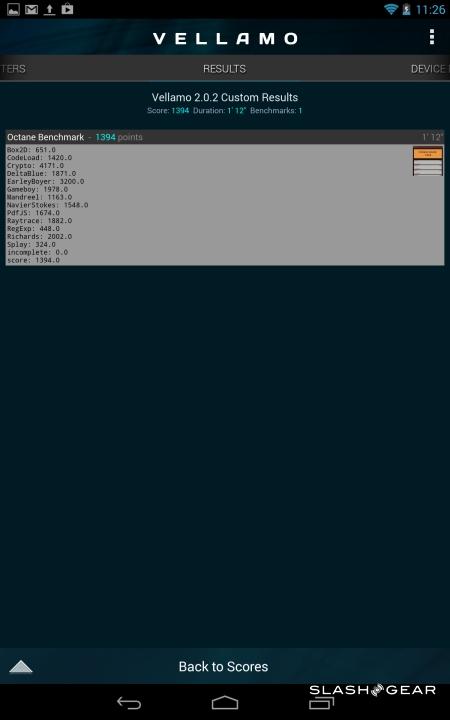 Benchmarks are admittedly an artificial way of gaging performance, but with that caveat it's fair to say the new Nexus 7 does particularly well. In the Quadrant test of overall processor power, 2013's Nexus 7 scored 5475, almost 2,000 points ahead of the Tegra 3 powered original Nexus 7. In Geekbench 2, the tablet scored 2,670, while in Antutu it managed 20,011. In the Sunspider test of browser speed, where a lower time is better, the new Nexus 7 completed in 1,177.1ms.