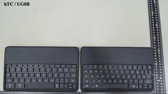 We say "unfinished" for a few reasons. First, there are some happy faces on the "Alt" keys, which could simply be quick-launch for emoticons. A target looking icon on the "Ctrl" key is also different. there is also no charging mechanism shown, or way to attach your Nexus 9 tablet. Two separate variants seem to suggest HTC has yet to decide how this one will look.