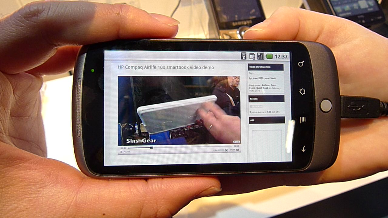 It's still not yet publicly available for Nexus One owners, but that hasn't stopped at least one demonstration of Flash 10.1 running on Google's "superphone". We came across the modified Nexus One here at Mobile World Congress 2010 this week, and shot some video of the SlashGear.TV media player (which is, obviously, Flash-based) along with YouTube. The good news is that it works; the bad news is that it doesn't work especially well.