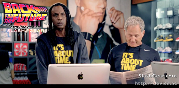 NIKE knows this good and well, a big portion of their hardcore fanbase being Sneakerheads who demand more than anything that their favorite shoe brand bring the heat. Therefor what they've done in this video is explain away the fact that this 2011 release of the shoe doesn't have Power Laces by saying that, well now, of course they don't, it's not 2015 yet – the Doc gives Marty his fully-functional pair of MAGs in the year 2015, not the year 2011, how could we be so silly!