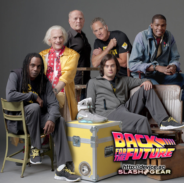 In this ad spot you'll be glad to know that a whole slew of your best Back to the Future / NIKE / NBA personalities make their faces known including Christopher Lloyd (Dr. Emmett Brown in BTTF), basketball player Kevin Durant, Donald Fullilove (Mayor Goldie Wilson from BTTF) and NIKE design genius Tinker Hatfield behind the sales counter. Also the shoe salesman is Bill Hader (one of everyone's favorite hero comedians currently starring on Saturday Night Live). It's in this video that we expected to be seeing some extra awesome promotion of the 2011 NIKE MAG and not a whole heck of a lot else, but what we've gotten here is NIKE's full understanding that no matter what they do to release the "greatest shoe never made", if it isn't exactly the same as it is in BTTF, it's not perfect!