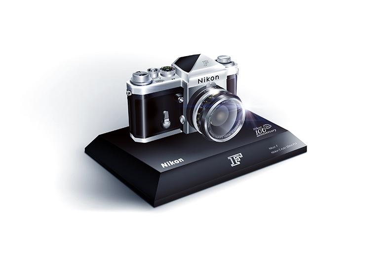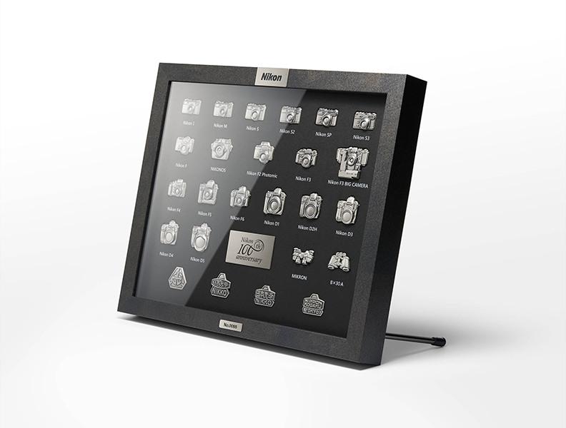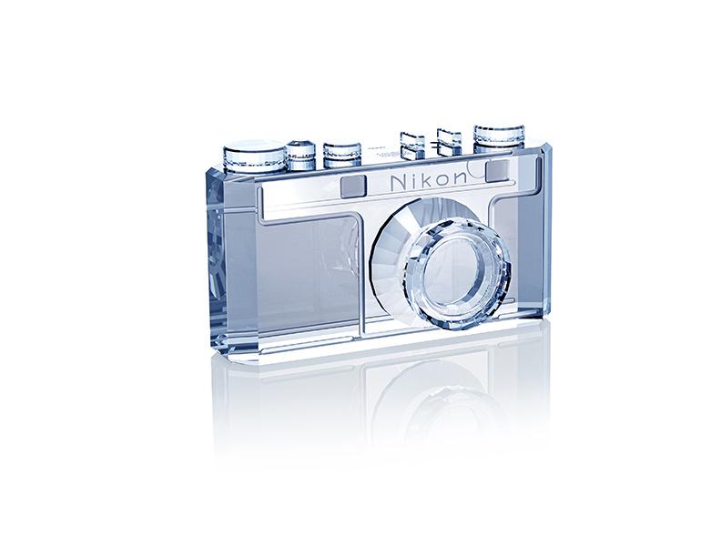 But if you're more of the collecting type, there also commemorative items coming. At the top of that list, and probably price, is crystal reproduction of the Nikon Model I, created by none other than Swarovski. A pin collection of Nikon's most popular products will also be available. And a cute tiny Nikon F, the company's first flagship SLR, can also grace your shelf or desk.