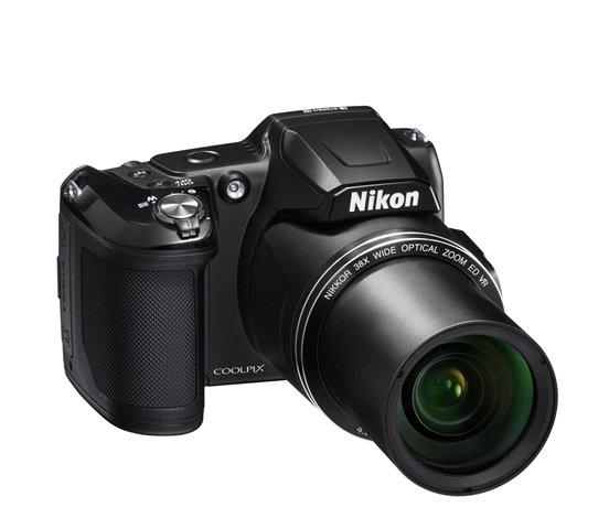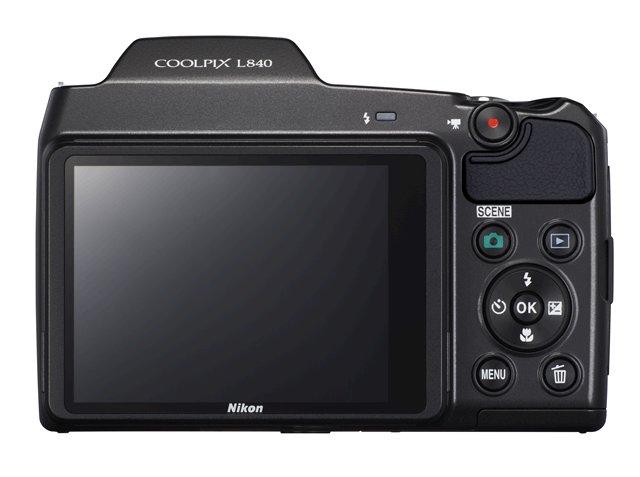The Coolpix L840, meanwhile, is similar in many ways but without some of the finger features. There's a 3-inch 921k-dot display, 38x optical zoom, 76x Dynamic Fine Zoom, WiFi, NFC, lens-shift VR tech, AA-battery operation, a dedicated button for recording videos, and Full HD video recording.