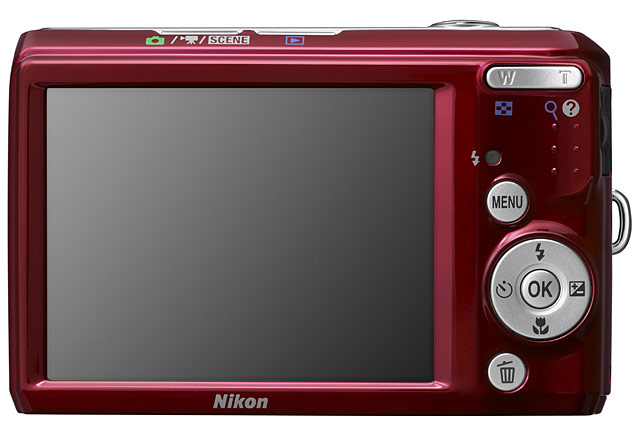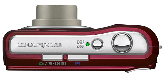 stores its images on SD / SDHC cards or in 20MB of built-in memory, and draws its power from two AA batteries. Priced at about $130, the Nikon Coolpix L20 will ship from February 2009 in deep red. For more details read our Nikon L20 preview.