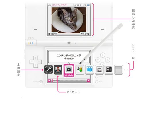 Nintendo has announced its new DSi, the update to the DS Lite, at the company's Fall presentation in Japan earlier today. As expected, it features the same dual-display clamshell layout as the DS (both larger at 3.25-inches, with the bottom display remaining a touchscreen) with additional media features: an external 3-megapixel camera, an internal video-call camera and an SD slot, together with internal storage. The removal of the GBA cartridge slot has meant the DSi can be 12-percent thinner than the previous DS Lite.More details, including the DSi Shop and a video overview of the DSi, after the cut