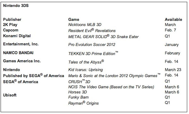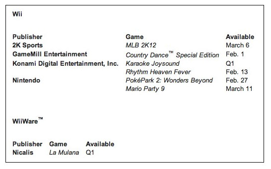 Nintendo Outs Massive Line Up Of Games For Early 2012