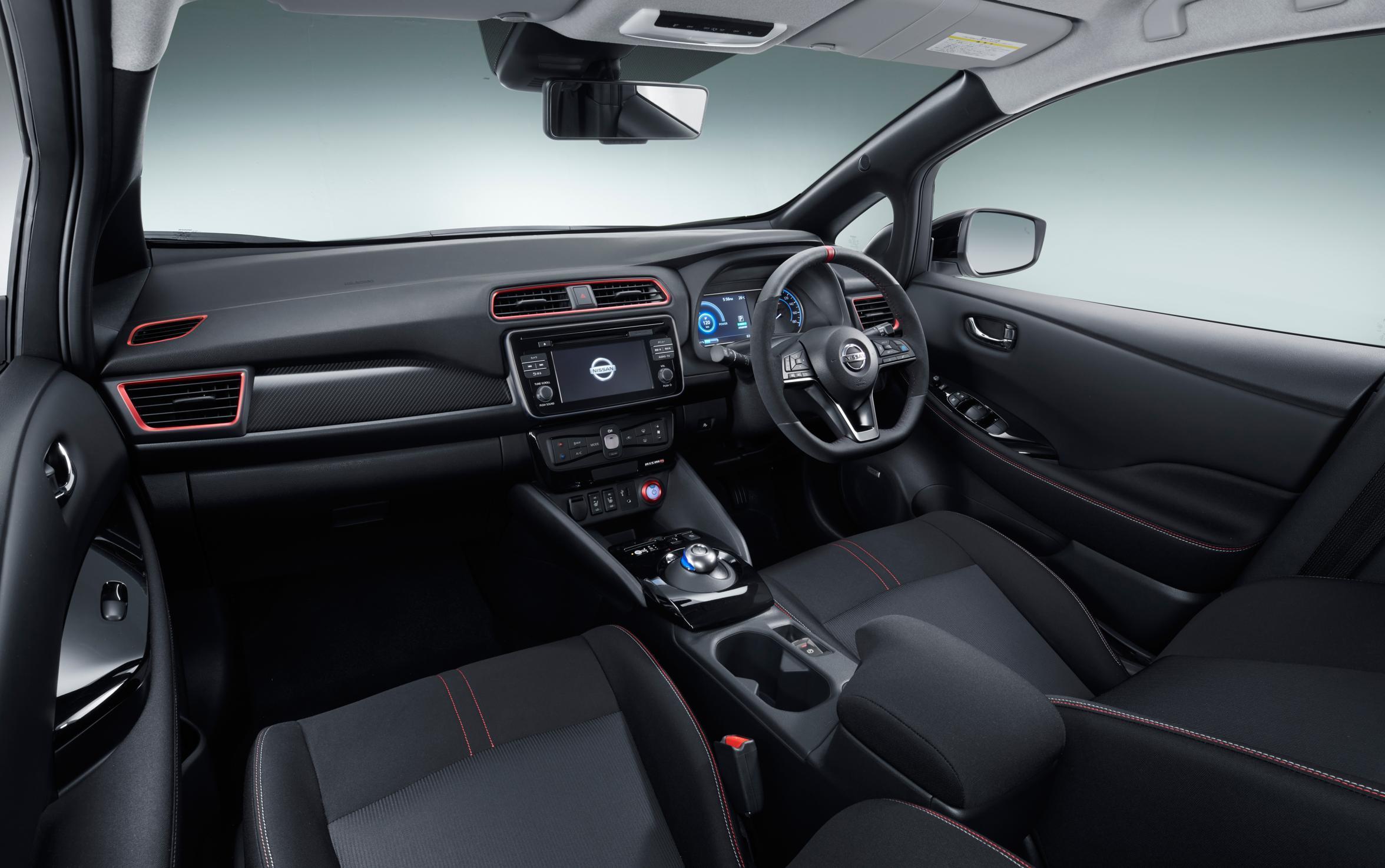 The interior is black with red accents. The concept also gets a sport tuned suspension and high-performance tires along with a custom tuned computer to improve acceleration. We've driven the 2018 Leaf, and for more details check out that story.