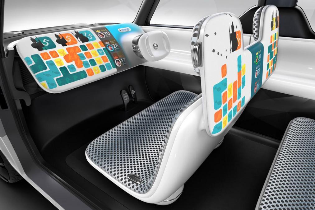 That means you can project video onto the seats. Nissan says that the car is the first designed specifically for digital natives and can be visually altered to suit the mood of the occupants. There are no knobs or switches inside the car, everything is controlled by voice or motion.