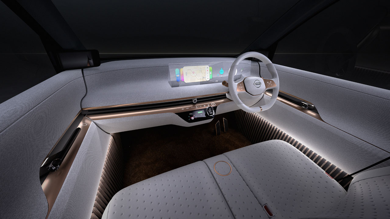 The dash only has a start button and shifter with no other physical controls. Vehicle speed and navigation directions appear in midair using a bezel-less prism design. Additional information is given to the driver via holographic displays. The vehicle would have ProPilot Remote Park that allows it to park itself and come back to get you when you are ready to go. Nissan does not indicate the car's driving range, battery size, top speed, or charge time. There is also no indication that the concept will be produced.
