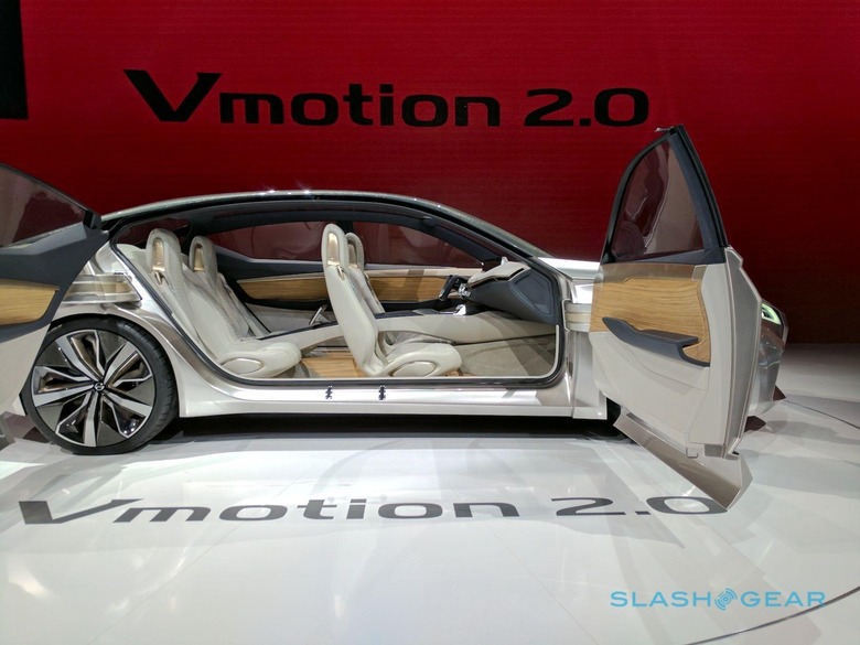 Nissan's Vmotion 2.0 Concept reimagines the four-door sedan with a far more aggressive design, previewing the automaker's plans for future models. Roughly the same size as the current Nissan Maxima, the concept car features a huge set of butterfly-esque doors, which open to reveal a pillarless cabin. It's been shown off for the first time today, at the North American International Auto Show 2017.