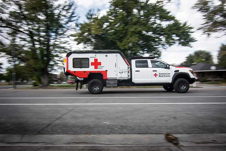 Nissan is showing off a truck called the Nissan Ultimate Service Titan using a Titan XD Diesel with the 5.0L Cummins engine. The truck was built for the American Red Cross and is meant for rescue and relief workers to find a place to rest and eat while on duty.