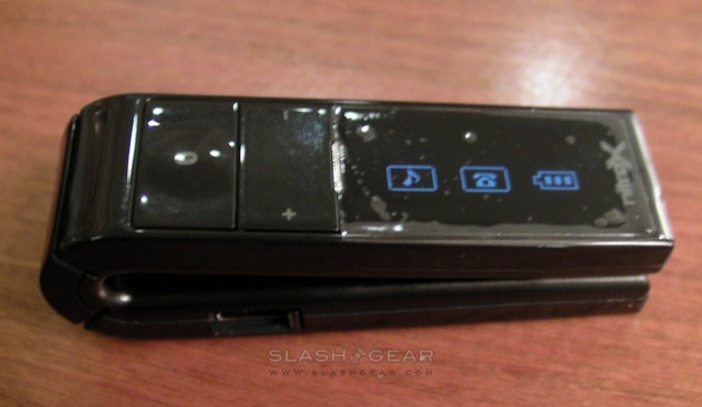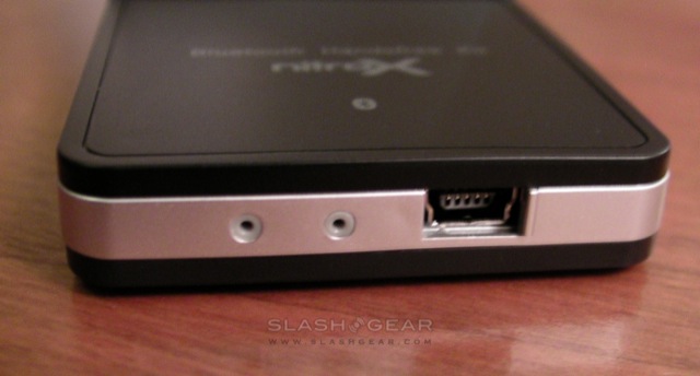 SlashGear stopped by new Bluetooth start-up Nitrox today to find out what they company had planned with their first range of cellphone accessories, the X835 car-kit and X735 stereo hands-free kit. The X735, shown here, is already a RED DOT design winner, a compact Bluetooth clip with a monochrome OLED display, stereo A2DP support and a standard 3.5mm headphones jack.