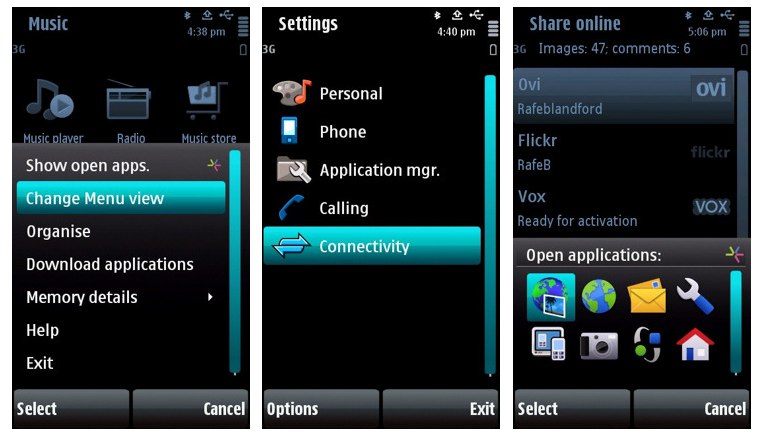 Nokia has gone the extra mile with the addition of touch to the UI. Not only will touching applications open the desired app but touching status icons will display a summary of information. The UI has been tweaked to work well with touch, the icons have been made larger and more widely spaced. New components have also been added, such as the toolbar appearing above softkeys to give quick access to commonly used functions. A double tap function was also added to the UI, it requires one tap of an icon to select it and another tap to open it. This feature prevents the aggravation of accidentally opening the wrong application.