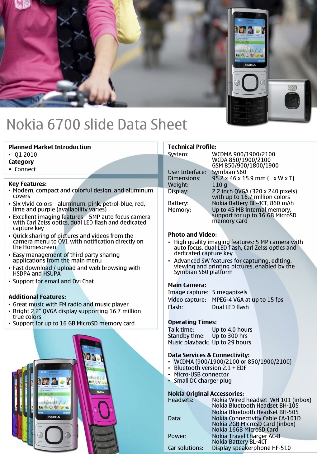 Both devices are expected to become available in the first quarter of 2010, and the retail prices before taxes and subsidies are anticipated to be EUR 160 for the Nokia 6700 slide, and EUR 100 for the Nokia 7230.