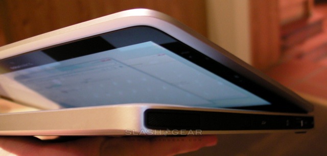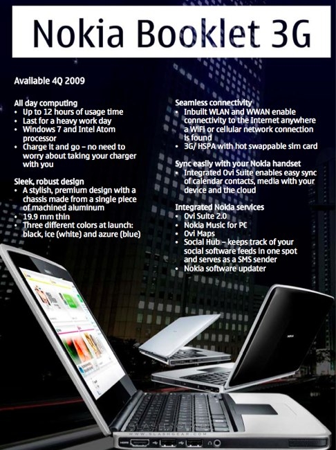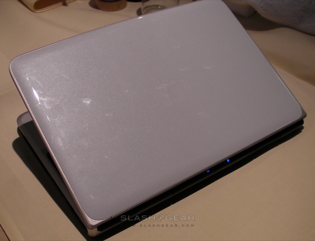 Nokia may have only just officially announced the full details of their Booklet 3G netbook, but SlashGear had the opportunity to go hands-on with the ultraportable at a pre-Nokia-World event. In the metal, the Booklet 3G certainly deserves its premium positioning: the metal chassis feels as slick as a MacBook Pro, while there are also hints of Apple's notebook range in the glossy glass display.Full hands-on gallery after the cut - Plus full hardware specifications