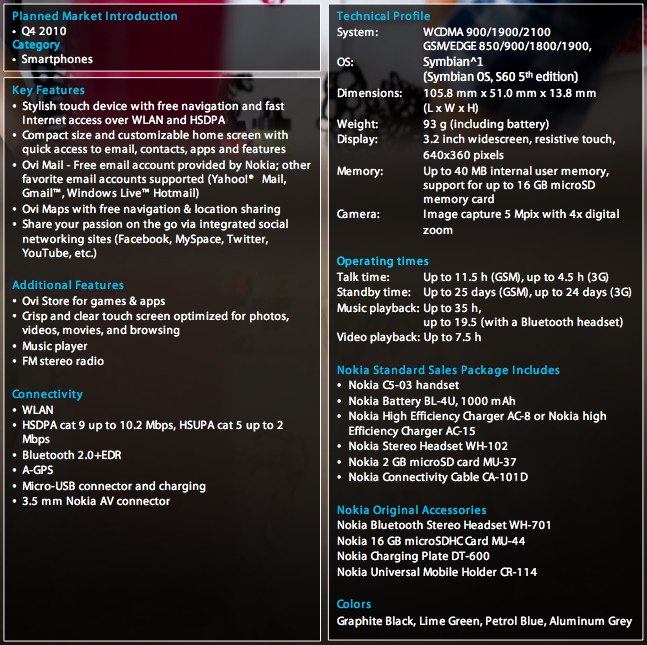 Nokia C5-03 Symbian^1 Budget Touchscreen Phone Debuts