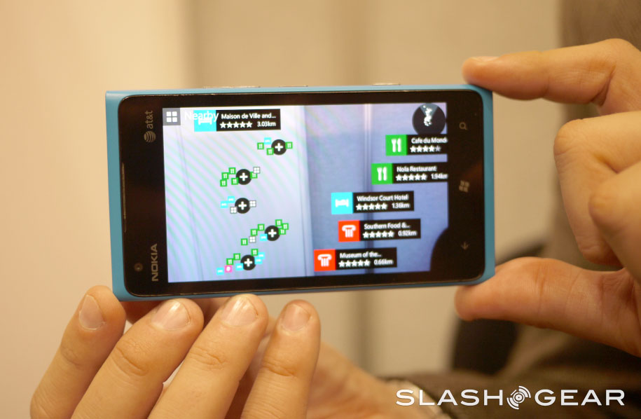 Finally check out the newest member of this pack of awesome beasts, Nokia City Lens. This application allows you to see a virtual reality world of locations all around you in several ways – hold it in portrait mode and you see a list, hold it in landscape mode and you see points around you mapped in real life via your camera, or hold your phone flat to see a flat map!