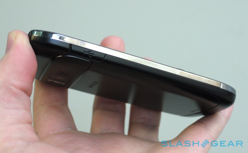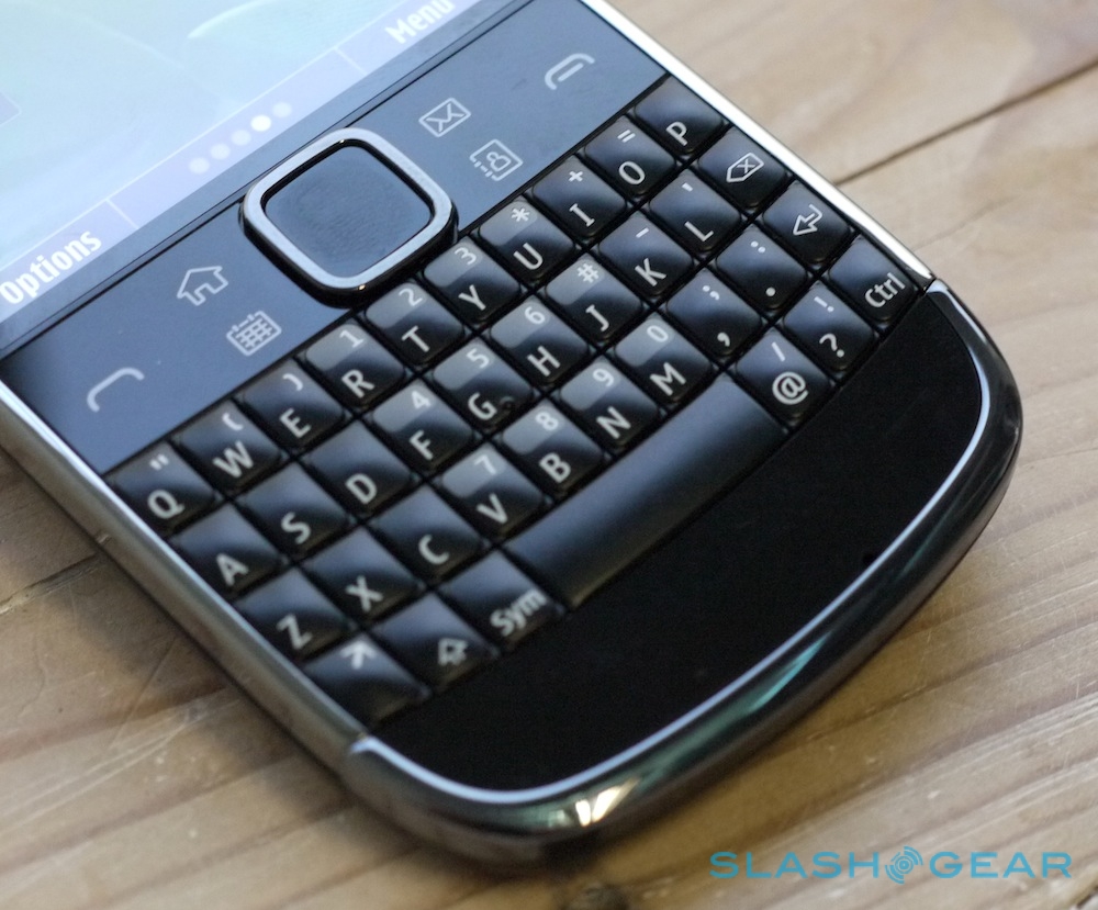 The keys have that balance of clickiness and travel we've liked on earlier smartphones, and Nokia is clear in how it's targeting not only existing Symbian QWERTY-phone users (including those looking to step away from their N97) but BlackBerry and Windows Mobile device users. They – like the side keys – are backlit, and there are the dedicated call/end keys that business users look for; there are also neat touches like the mute button only illuminating when mute is active.