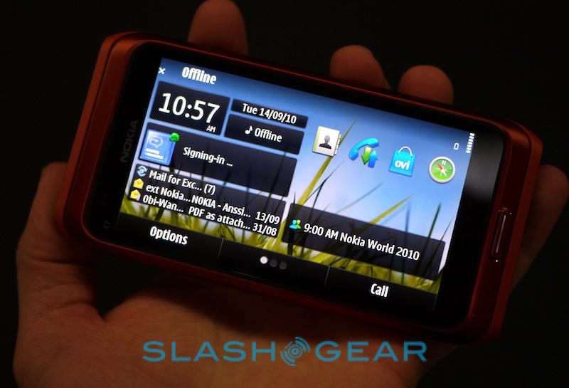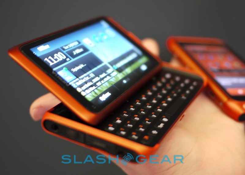 It's a slightly larger handset than the N8 in all directions, to accommodate not only the keyboard but the 4-inch capacitive touchscreen display, but it's just as well made. The aluminum chassis is smooth and tactile, and the screen hinge – which is fixed, when open, at the angle you can see in the photos – feels solid and flicks open and shut nicely. The touchscreen, too, is responsive, and we were able to navigate between apps with no noticeable slow-down.