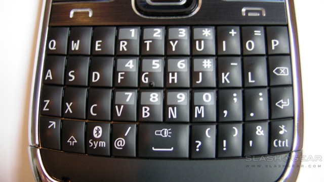 Of most interest to frequent messagers, however, is the keyboard, and we've been surprise at just how usable the E72's QWERTY actually is. The keys are small – around the size of a tictac, in fact – but their pronounced domed pads and practically perfect tactile feel add up to a 'board that's incredibly satisfying to use. We've been switching between using the E72 and the Nokia N97 mini, and the key layout of the Eseries device is far preferable; commonly used punctuation, including @, ? and ! don't require a shift or function modifier, and while the space bar is only double-width it's broad enough in context.