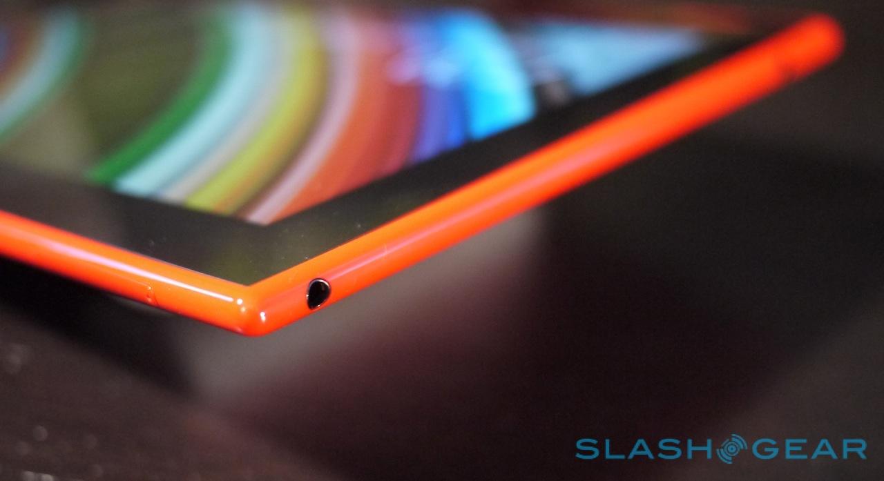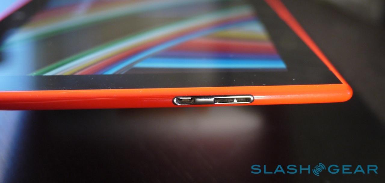 In the US, Verizon and AT&T will offer the Lumia 2520 complete with data packages, though of course owners will be able to use them WiFi-only (and the unsubsidized model will be $499); there's WiFi a/b/g/n (not 802.11ac) along with Bluetooth 4.0 and NFC. Other connectivity includes a microUSB 3.0 port and a micro HDMI port on one side, and a 3.5mm headphone jack on the other (confusingly similar to the charging connector which is also on the same edge). Along the top there's a power button and volume rocker, while on the bottom there's a proprietary docking connector.
