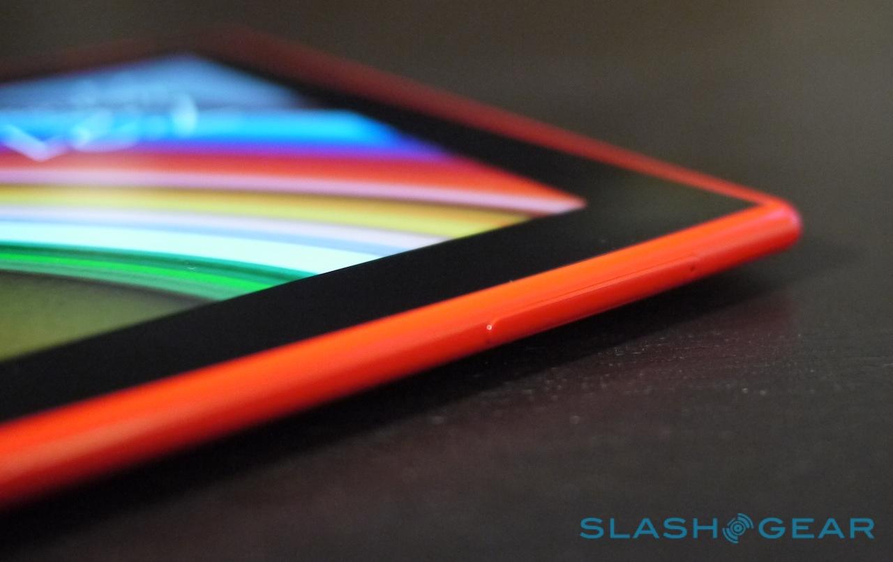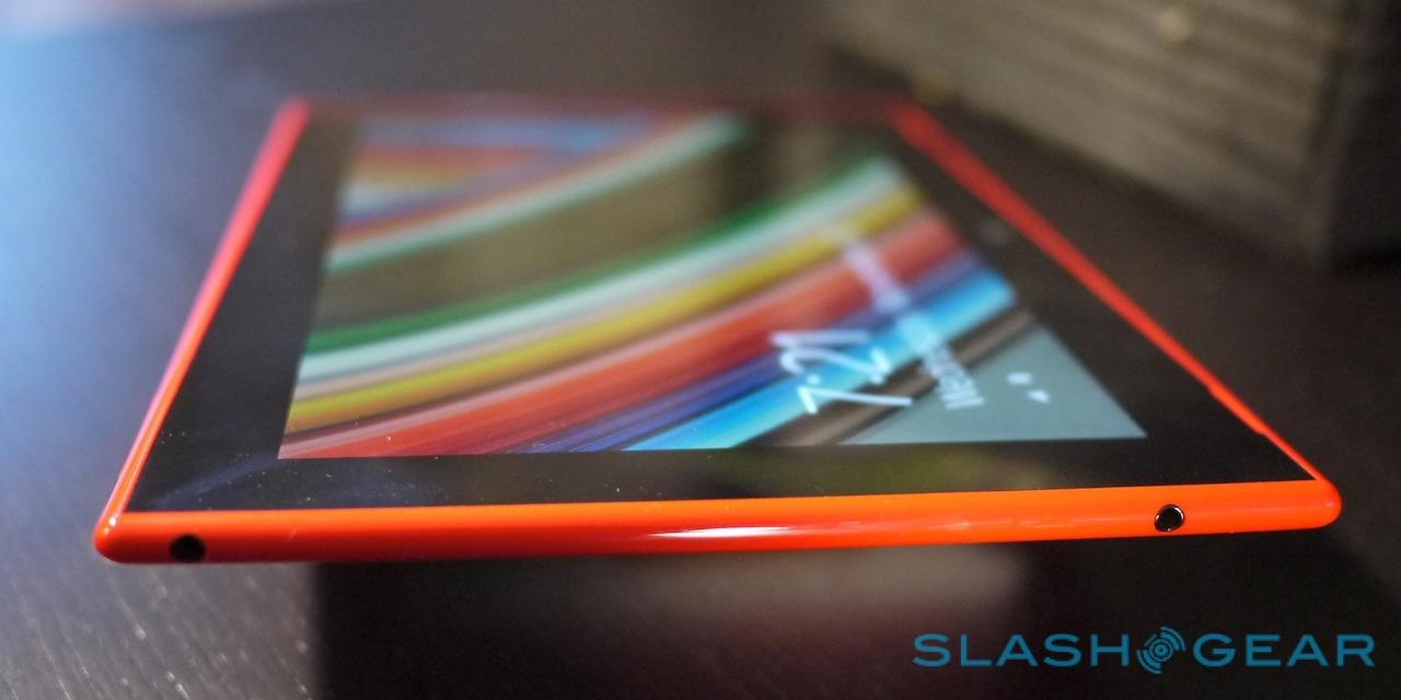 The glossy red of our review model feels solid in the hand, though there's some noticeable flex to the back panel. On the front you get a 10.1-inch, 16:9 aspect Full HD display, which Nokia is particularly proud of: it uses a particularly bright 665 Nits LCD topped with Gorilla Glass 2, for improved outdoor visibility and broader viewing angles; there's also a special coating to supposedly cut down on reflections.