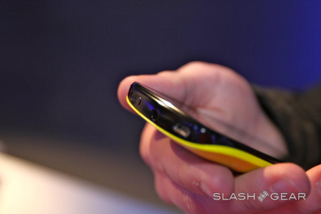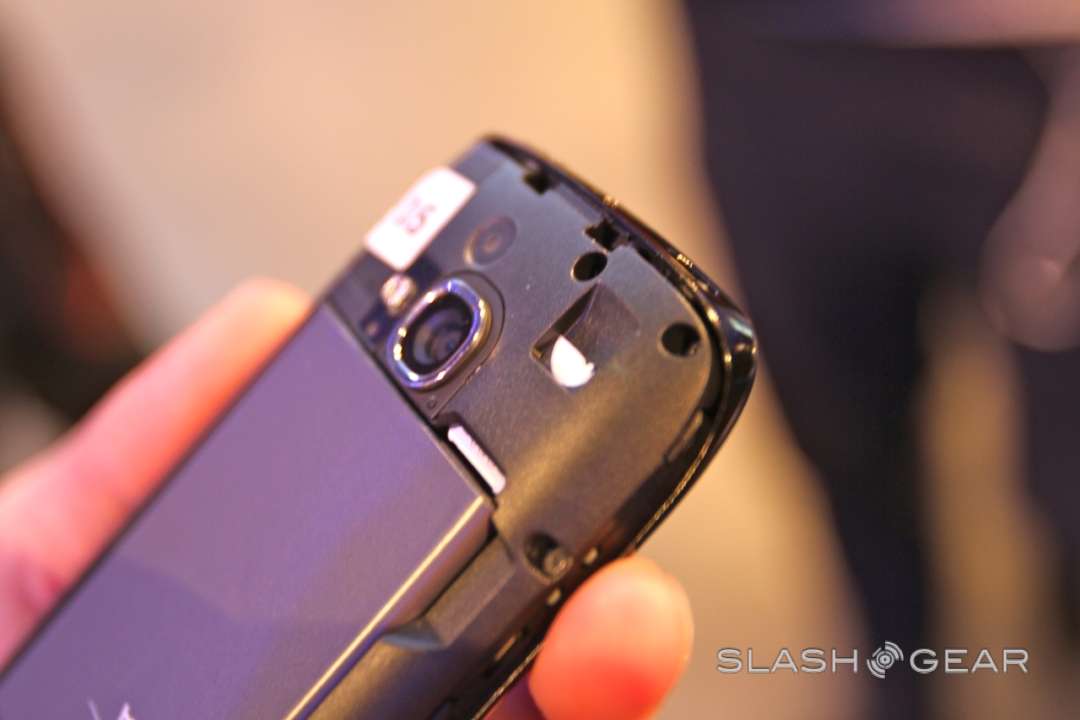 On the back is a 5-megapixel camera with a single LED flash, down from the 800's 8-megapixels and dual-LED. We didn't have a chance to test it out, so image quality assessment will have to wait until review units are available. Video capture is limited to 720p HD, however.