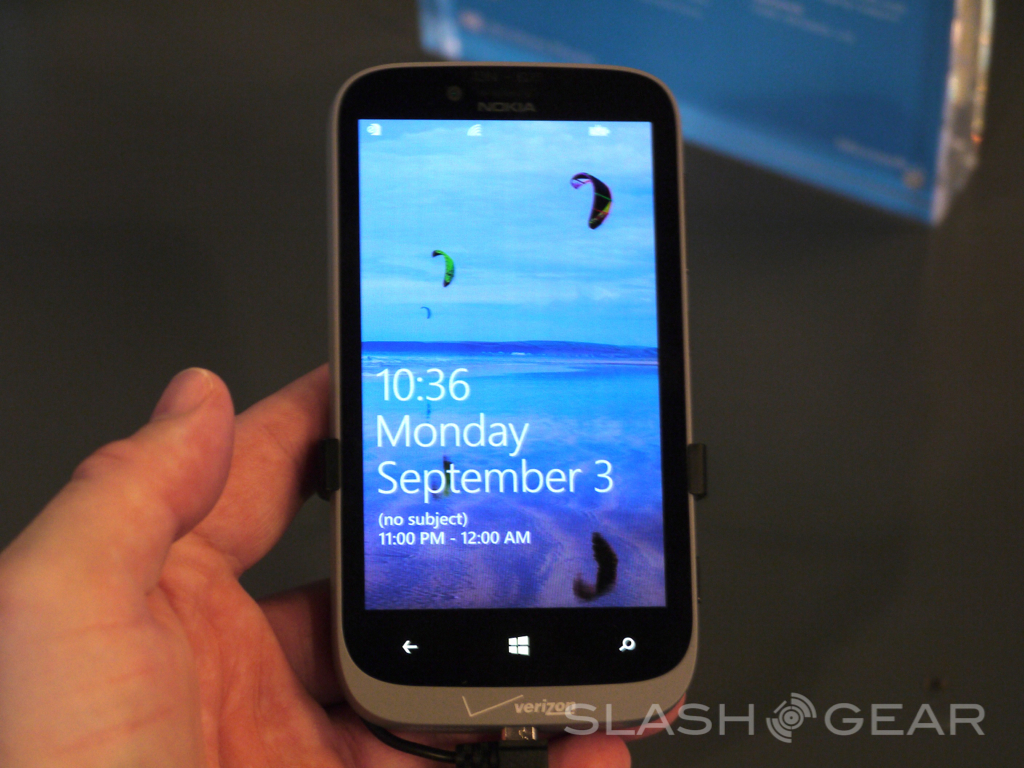 Also inside this device is 1GB of RAM, and 8 megapixel camera on the back, and a 1.5GHz dual-core Qualcomm Snapdragon S4 processor. Have a peek at our original 820 hands-on for more comparisons, then hear this: Verizon will be offering up this device for $99 attached to a 2-year contract. That's a fabulous deal if you love Windows Phone 8 and want a Carl Zeiss lens on the back to back up your 8 megapixels of fury.