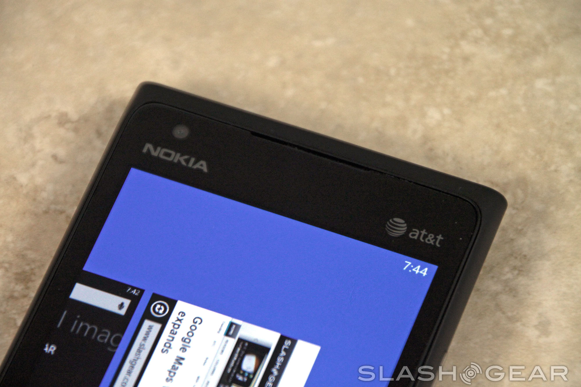 Speaking of buttons, the Lumia has four, all on the right side: volume up and down, the aforementioned Power button and a much-appreciated dedicate power button. On the front there is only the screen, the standard Windows Phone 7 capacitive buttons and the front-facing camera. On the bottom you'll find a strangely placed but appreciably loud speaker, and the top houses the MicroUSB port, headphone jack and a MicroSIM tray accessible by the included key. The left is bare, and the back holds the 8-megapixel F/2.2 camera.