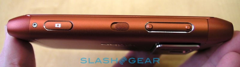 It's also surprisingly light, with the anodized aluminum chassis adding up to a handset that's sturdy but won't weight down your pocket. Think considerably lighter in the hand than, say, a Google Nexus One. We had our doubts initially about the bright orange color scheme, but in the metal it's far more attractive than in press shots. Meanwhile the slightly curved edges make for comfortable hands-feel, though we do wish Nokia had added a lens cover for the 12-megapixel camera since that whole portion of the back panel does extend considerably.
