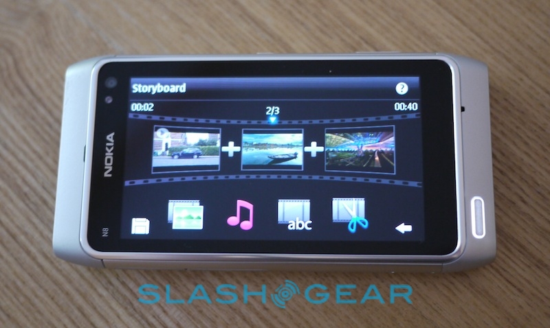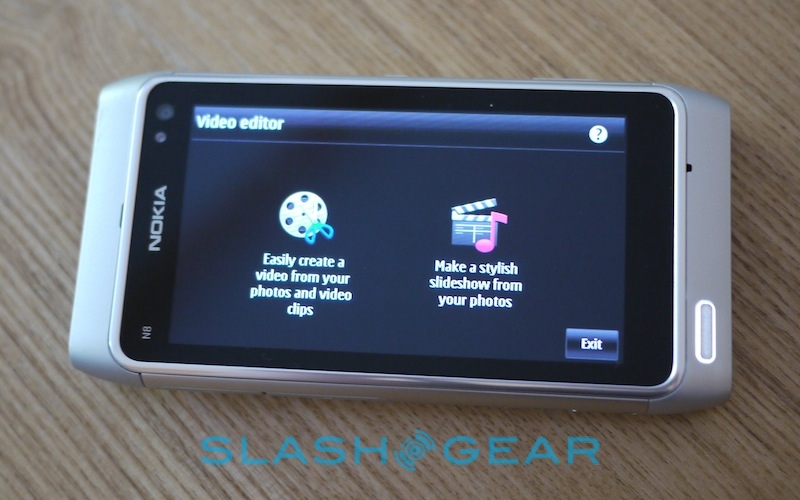 Still, the UI for both apps is sensible and you can have decent results after just a few minutes work. The video app offers either a photo slideshow wizard, with various themes and transitions, while the full video editor allows you to splice together clips and stills with titles, transitions and other effects. We expected the ARM11 CPU to struggle a little with some of the more complex rendering involved, but while there's unsurprisingly a pause while the N8 churns, it's not as lengthy as we feared it might be.